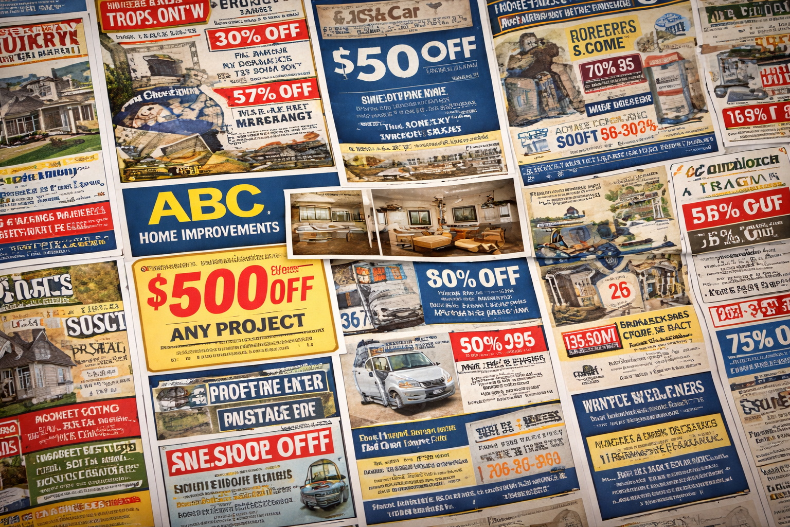 Cluttered coupons crammed together